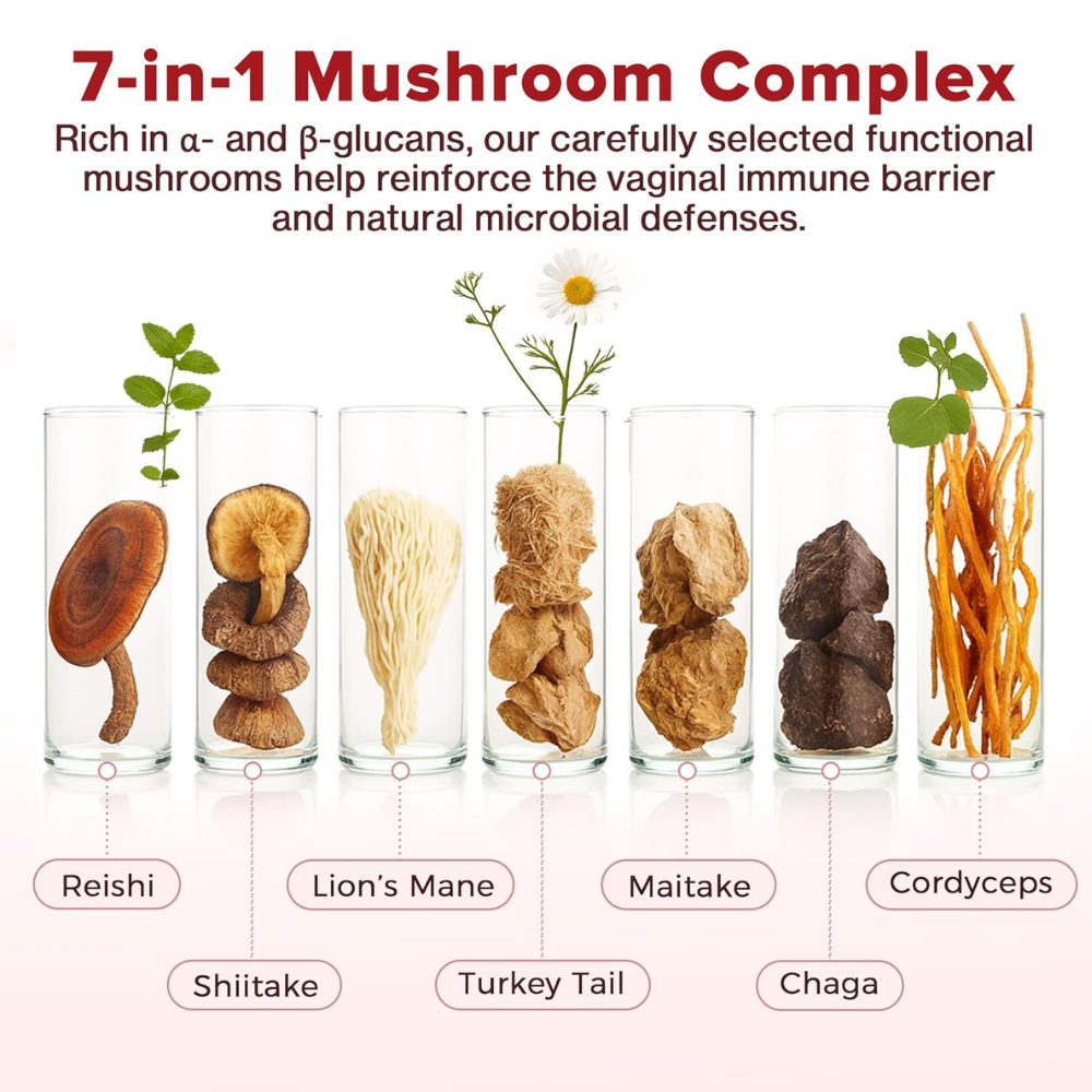 That’s why we created this Vaginal Probiotic with Mushroom Complex — a science-backed, gentle daily formula that works with your body, not against it.